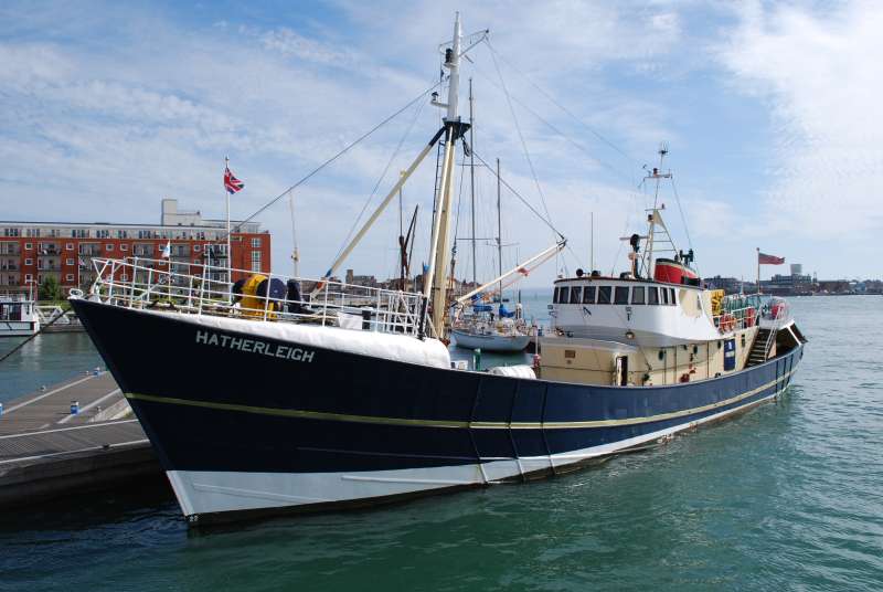 A pleasant photograph of the ex - trawler Hatherleigh berthed in Portsmouth.